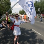 A sáhárit után a Szim Salom Hitközség tagjainak csoportja közösen vett részt a Pride-felvonuláson.