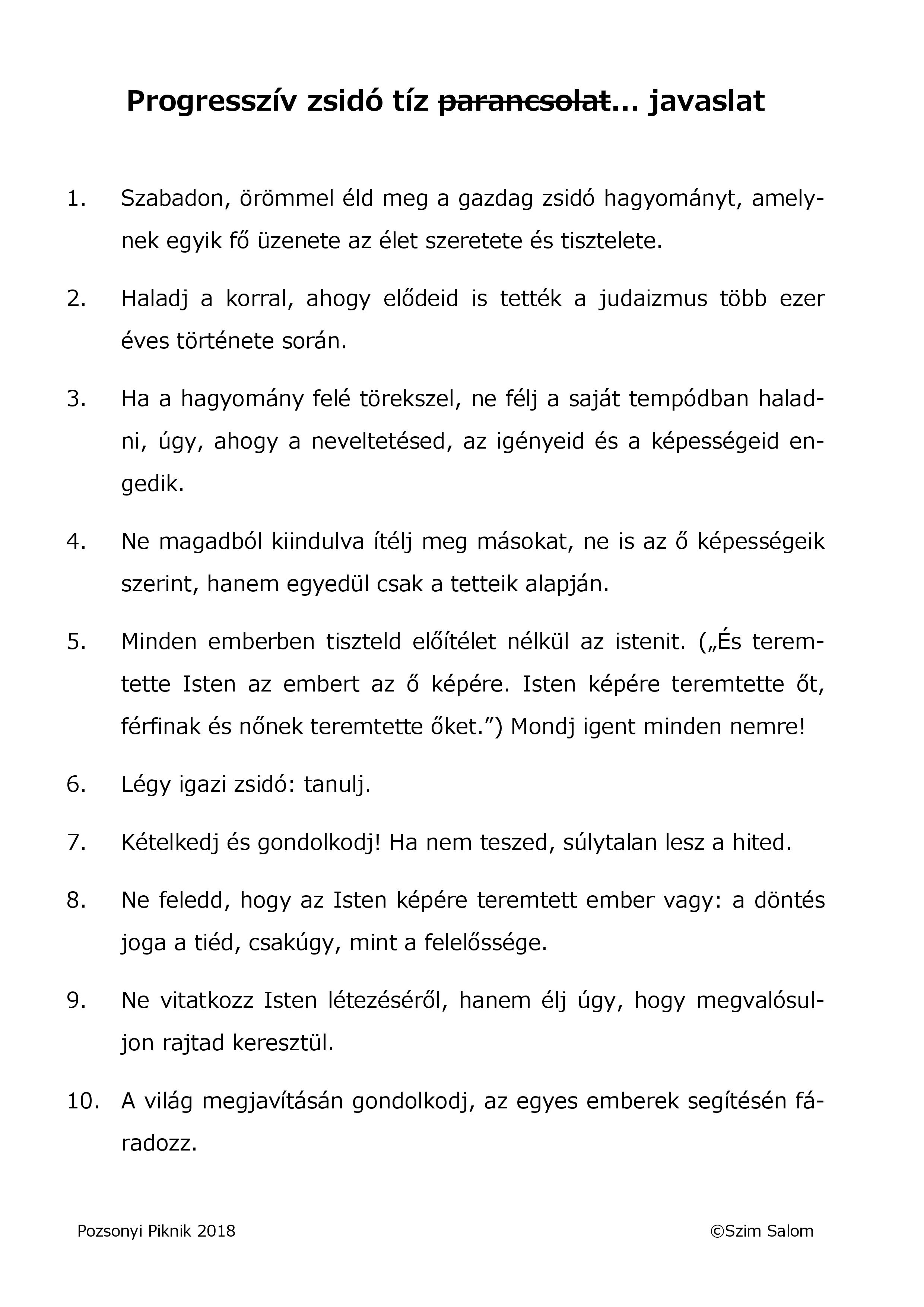 – Közösen gondolkodtunk a progresszív zsidóság tíz parancsolatáról javaslatáról hitelveink és nézeteink alapján